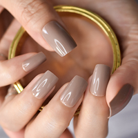 Искусственные накладные ногти квадратные глянцевые прозрачные коричневые ногти для маникюра для женщин
