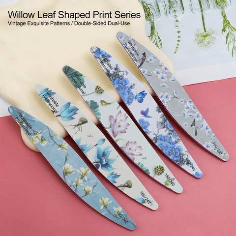 פצירת ציפורניים בסגנון ציור שמן עם דוגמת פרחים, ניתנת לשטיפה עם ספוג, עיצובים מרובים